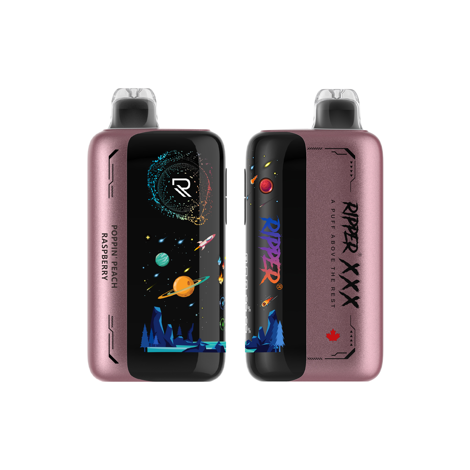 A juicy fusion of ripe peach and tangy raspberry, delivering a sweet and refreshing fruity experience.